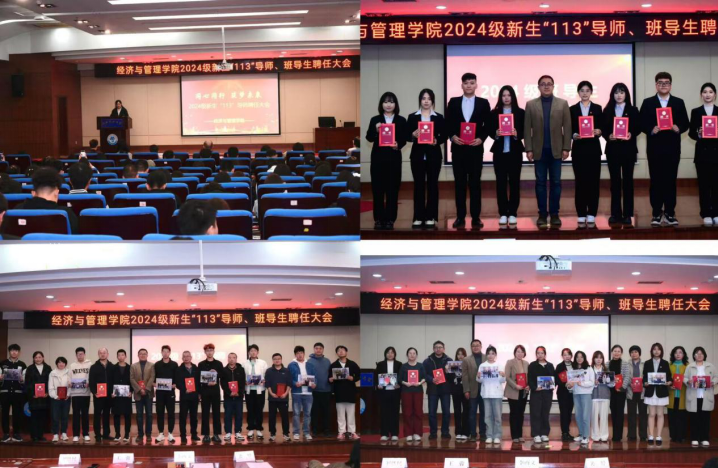 学院副院长刘铁民宣读了2024级新生“113”导师、班导生聘任决定。与会领导为“113”导师及班导生颁发聘书,导师为学生送上第一张“全家福”。会计2401班郭家彤同学、应急管理教研室苗蕴慧老师分别作为新生代表和“113”导师代表进行了发言。