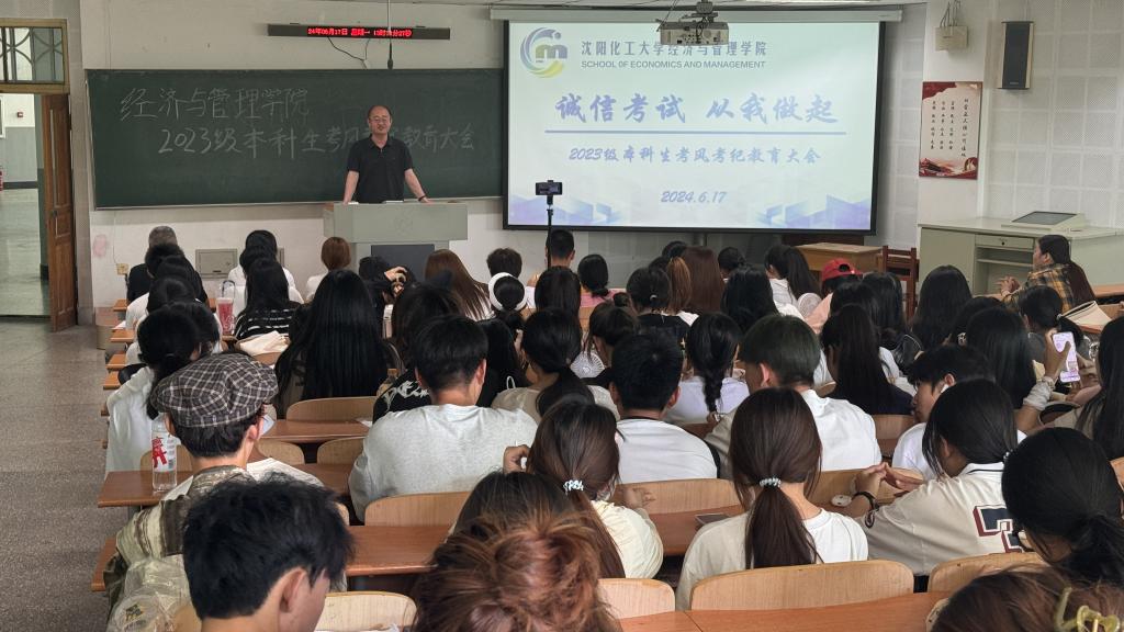 为进一步加强考风考纪教育,深入推进bat365官网学风建设工作,倡导“严肃考风考纪、弘扬优良学风、文明诚信应考”,增强同学们的诚信考试意识,保证考试的公正性,端正同学们的学习和考试态度。6月17日下午,“诚信考试,从我做起”2023级本科生考风考纪教育大会在通明楼232、213教室举行,大会由2023级辅导员王怀老师主持,bat365中文官方网站党委书记李丙文主讲,2023级全体学生参会。