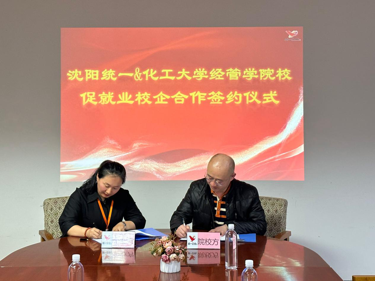 在沈阳统一企业公司,人力资源负责人介绍了公司发展历程、主要业务范围、企业发展规划、企业文化建设等情况。双方就访企拓岗、毕业生实习就业、校企合作等方面进行了深入讨论交流。双方针对校企合作达成意向并签署合作协议书。