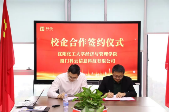 在交流过程中,双方就建立长期稳定的实习基地、开展产学研合作项目以及共同申报科研课题等合作意向进行了探讨,并初步达成了合作框架,并举行了“实习就业基地共建 校企合作”签约仪式,校企双方均表示将积极整合资源,发挥各自优势,为学生创造更多的实习实践机会与就业岗位,实现校企互利共赢、协同发展的目标。bat365中文官方网站副院长刘铁民、教师代表陈丹、徐婧玥,厦门科云信息科技有限公司院校事业部副总经理林英耀、辽宁省总经理胡火坤、科云教育研究院副院长林剑平等参加了签约仪式。