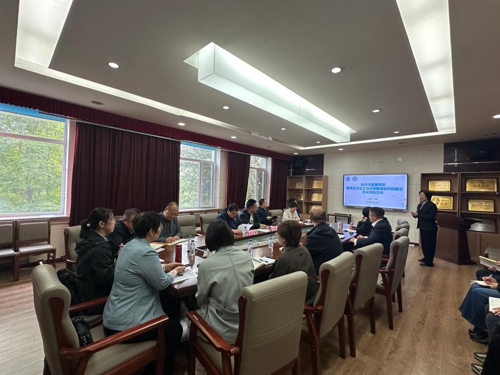 座谈会伊始,bat365中文官方网站院长王蓉系统介绍了学院在学科布局、人才培养、科学研究与社会服务等方面的基本情况与建设成果,并着重分析了在新形势下,学院学科发展面临的机遇与挑战,表达了依托东北化工智库研究院(筹)建设(以下简称智库研究院),推动经管学科与学校优势工科深度融合、实现跨越式发展的决心与思路。