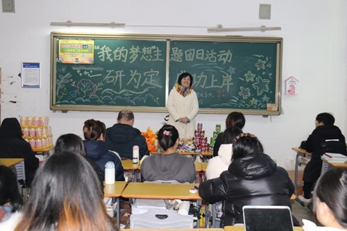 为了推进“一站式”学生社区综合管理模式建设,不断加强团学建设、充分发挥朋辈引领示范作用,进一步引导考研学生自我管理,12月5日,bat365中文官方网站以全体考研学生为成员,成立了2021级临时团支部,并以“我的梦想”为主题在考研自习室(景唐楼112室)开展了一次特殊主题团日活动。bat365中文官方网站党委书记李丙文、院长王蓉、副书记关婷、全体辅导员参加了活动,活动由2021级辅导员刘伟主持。