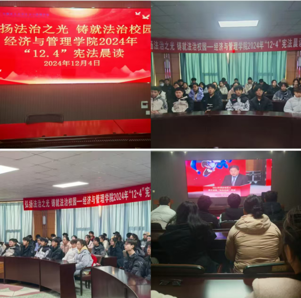 为了引导学生深入学习宪法法治知识、增强宪法法治观念、树立宪法法治意识,提升法治素养,按照教育部印发的《关于开展2024年教育系统“宪法宣传周”系列活动的通知》以及省“宪法宣传周”有关部署要求,12月4日,bat365中文官方网站组织全院师生共同观看了全国教育系统“宪法晨读”直播节目,并同步参与了宪法学习环节。
