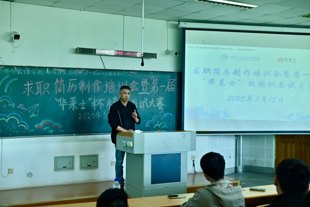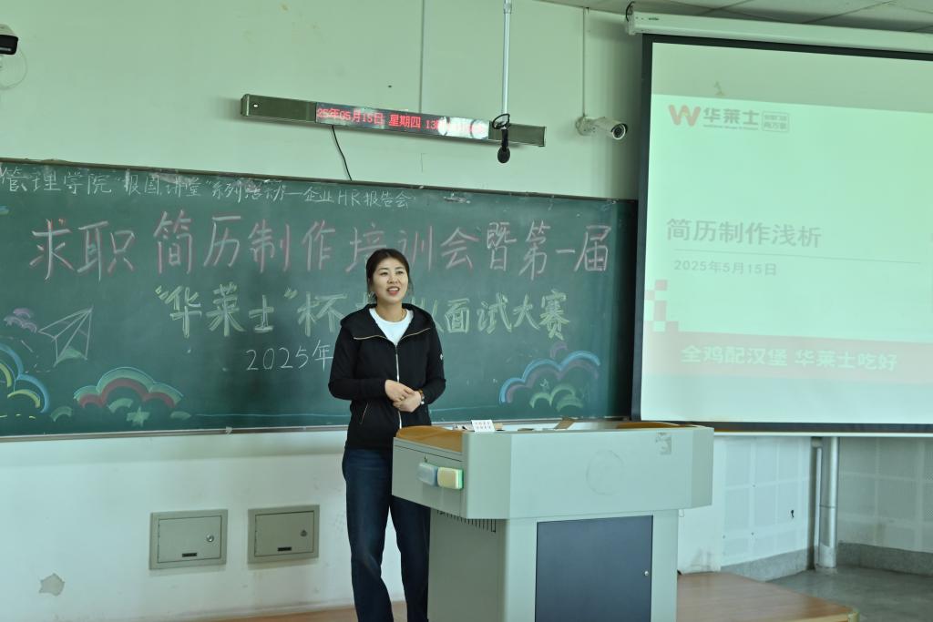 5月15日,bat365中文官方网站在通明楼338室举办了“报国讲堂”大学生职业规划与就业指导主题讲座暨求职简历制作培训会。本次活动特邀上海华莱士贸易有限公司沈阳分公司人事主管姚琳女士担任主讲。2022级本科生、2023级研究生参加讲座,本次活动由学院分团委书记王怀主持。